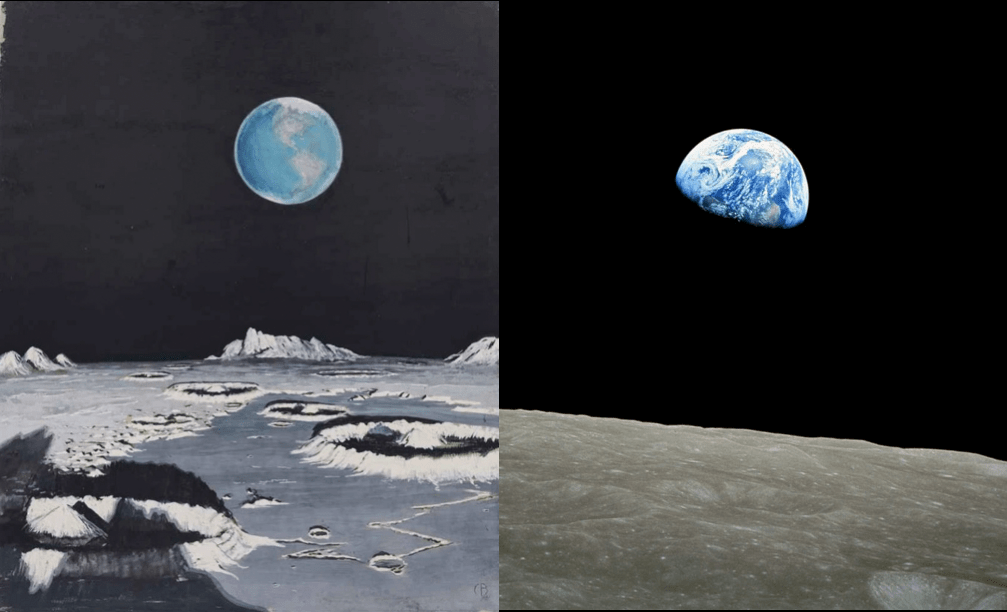 Questa è la Terra vista dalla Luna. Disegnata (e quindi “osservata”) prima che andassimo sulla Luna. È un dipinto del 1939 di Charles Bittinger, straordinariamente simile alle fotografie scattate trenta anni dopo dagli astronauti dell’Apollo. Alcuni dettagli sono di un realismo impressionante, come i bordi rialzati dei crateri lunari. Charles Bittinger (1879 – 1970) era un artista americano. Nel 1939, il National Geographic gli assegnò il compito di creare una serie di dipinti per mostrare ai lettori i paesaggi che un giorno avremmo visto da vicino nello spazio siderale.